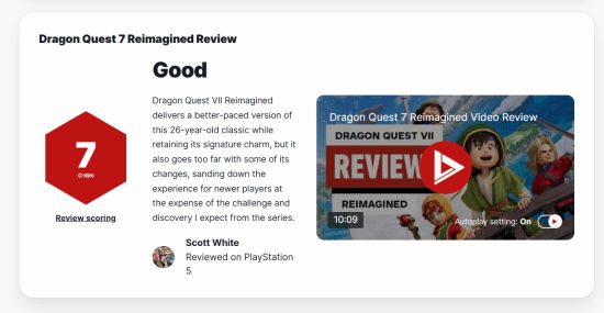 勇者斗恶龙7重制版媒体评测现已解禁。IGN为这款经典RPG的重制作品打出了7分的评价,认为其在优化原作节奏的同时,也因过度简化而失去了一些原有的魅力。