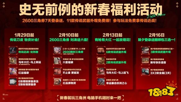 新春来洲接“红”利!2月10日-2月23日,累计7天登陆游戏,领取2600限时三角券!最快2月16日当天有机会全部领取完毕!