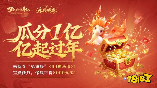 为迎接新年,游戏特别开启新春专属万人大服——“69神马服”。该服务器不仅提供“瓜分1亿元宝”、完成目标保底8000元宝等重磅福利,更享有“新服交易0限制”、“金券可赠好友”等专属特权,配合生肖神兽“神马”的助力,真正实现“边玩边赚”的乐趣。