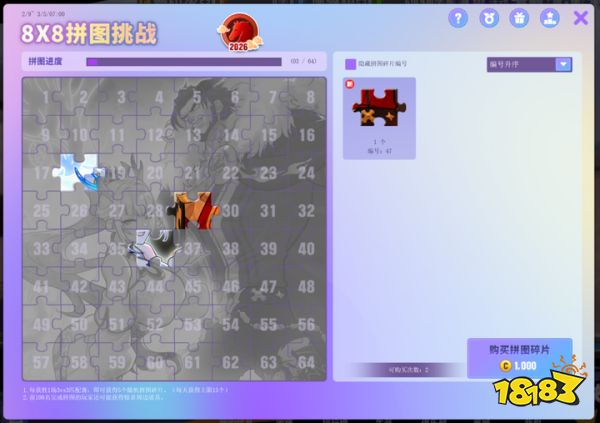 玩家每获胜一场3V3匹配就可以获得5个随机拼图碎片,每天获得上限15个,前100位完成拼图的玩家还有机会获得惊喜周边道具。