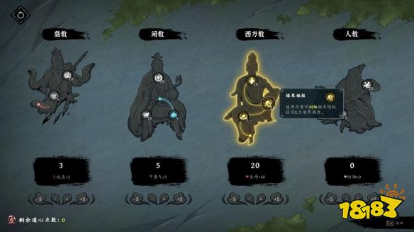 而回归村庄营地后,悉心培育神树建木解锁局内局外的更多变数、事件与能力。观摩悟道壁,选择截教、阐教、西方教等等多元教派的技能属性升级——帮助玩家在其后每一轮回的战斗中稳步变强,最终证道飞升。