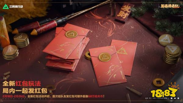 新春来洲接“红”包!2月10日起,全新活动开启,玩家可在局外包【拼手气红包】,并带入局内给队友发红包,首次给队友发手气红包,额外膨胀60万哈夫币!