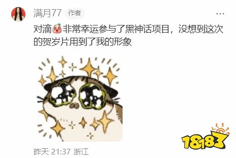 满月77同时表达了对游戏科学团队的感谢,称能够参与黑神话项目感到“非常非常幸运”,并坦言没想到此次贺岁片会直接用到自己的形象。