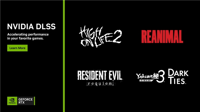 本周《高能人生 2》(High On Life 2)和《人中之龙 极3/人中之龙 3 外传 Dark Ties》(Yakuza Kiwami 3 & Dark Ties)将首发支持 DLSS 4 多帧生成。