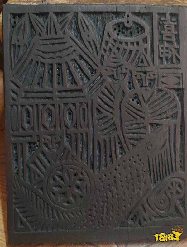 少侠们通过新春活动【七日拓福】,即可大致“学习掌握”到甲马纸的制作工艺。首先需要甄选质密纹匀的梨木良材,将已经勾勒绘制好的纹样团反贴在木板上,严格按照画稿轮廓进行雕刻。