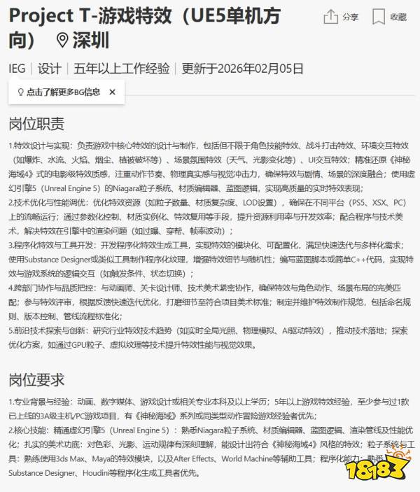 根据岗位描述,《Project T》是一款UE5单机方向的3A级主机/PC游戏,目前正处于早期团队组建阶段。特效、动画等岗位均要求候选人至少参与过1款已上线的3A级主机/PC游戏项目,并明确表示有《神秘海域》系列或同类型动作冒险游戏经验者优先。