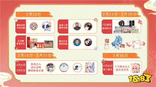 2月14日-15日,游戏趣玩,新岁无忧。知名游戏KOL陪你边玩边唠,解锁新春彩蛋,热热闹闹过大年。