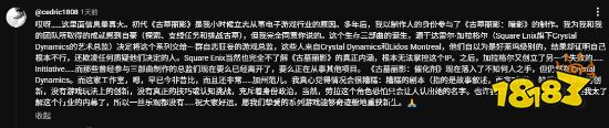 尽管整体基调偏向悲观,发言者仍表示希望自己判断失误,并期待系列能够迎来转机。不过,截至目前,发言账号真实性尚未得到确认,Crystal Dynamics方面也未对上述言论作出回应。