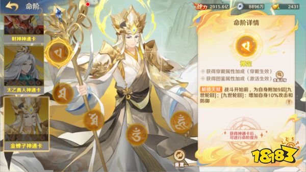 羲和之境活动商店上线全界太乙真人和全界金蝉子两款金将神通卡,守护使获取后可消耗相关金将碎片进行命阶提升、六识等培养! 金将神通卡切换时相关养成遵从金将设定(如命阶≥3才可进行六识培养),金将神通卡可进行重生,重生后恢复0命状态,返还相关材料。有需要的守护使大人可别错过~