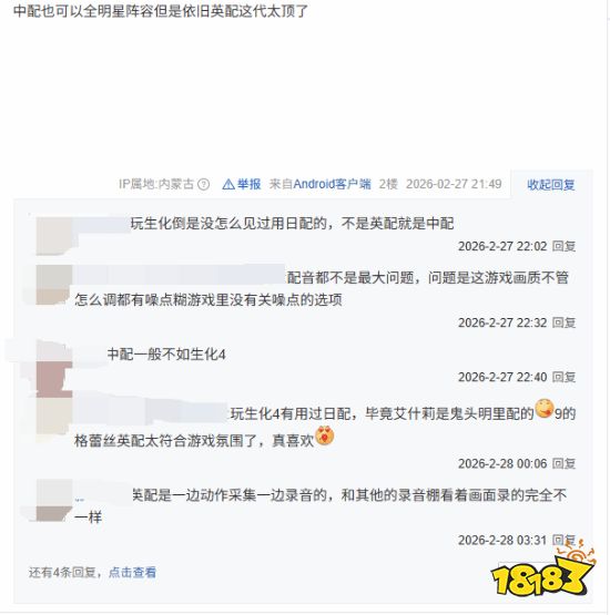 与此同时,玩家们对中文配音的评价则存在不同看法。部分玩家表示中文配音也还可以,但也有玩家认为中文配音确实稍逊一筹。