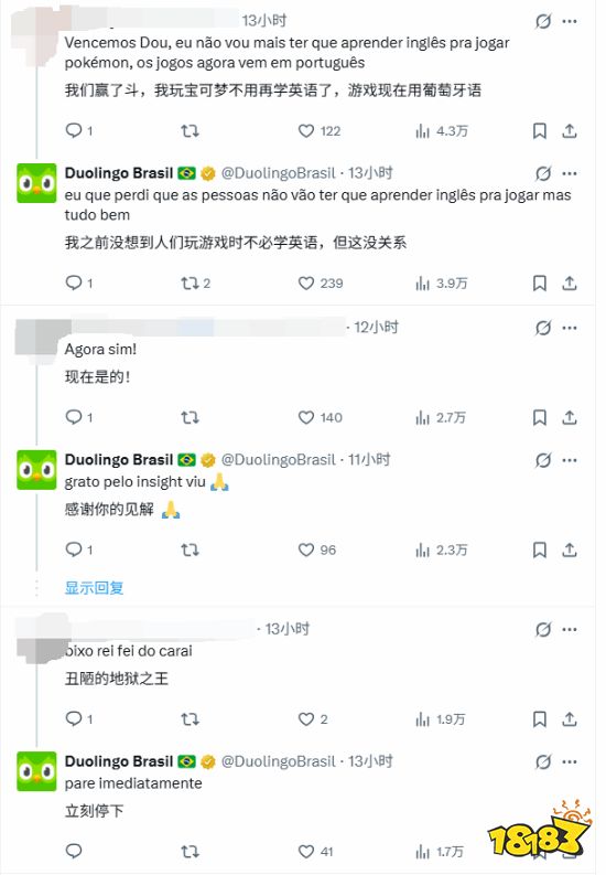 巴西网友则调侃道:再也不用学英语了,因为游戏当中支持葡萄牙语。