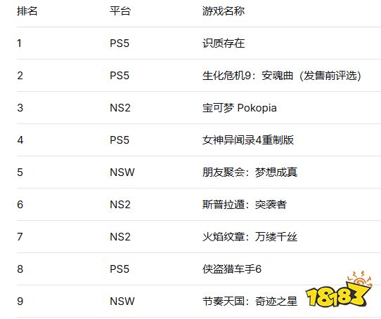 以下是Famitsu读者票选最受期待游戏TOP10榜单: