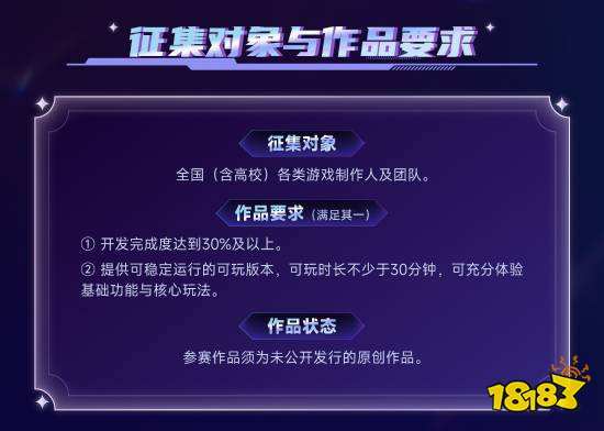 2. 完成度要求:参赛作品开发完成度需达到30%及以上,或提交可稳定运行的可玩版本(可玩时长不少于30分钟),能够充分体验游戏基础功能及核心玩法内容。