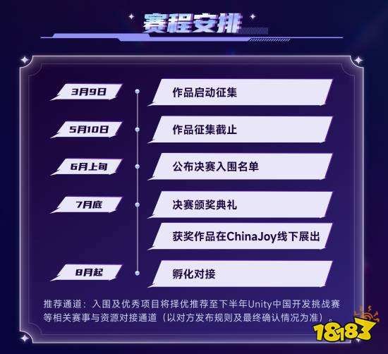 同时,组委会将对入围及优秀项目进行择优推荐,纳入下半年Unity中国开发挑战赛等相关赛事与资源对接通道(以Unity中国发布赛事规则及最终确认情况为准),为项目提供进一步展示交流与能力提升机会。