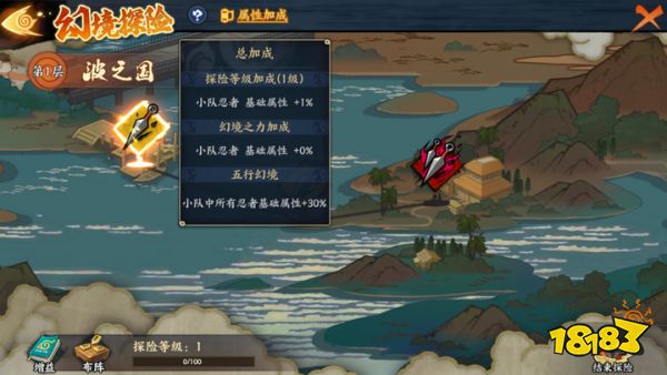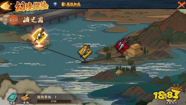 4、幻境中的敌人挑战难度将随着层数增加而变难,击败敌人可获得探险经验,累计探险经验可提升探险等级,用于对小队忍者提供额外属性加成;