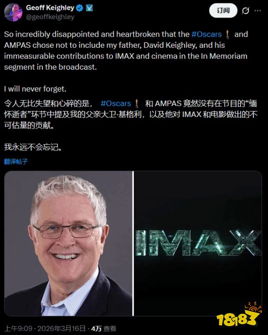 像这样的哀悼环节难免引发一些争议,有人认为某些人被忽略了,也有人觉得这是典礼时间有限、难免取舍。你怎么看这件事?杰夫公开批评奥斯卡,在你看来是否妥当?欢迎在评论区聊聊你的看法。