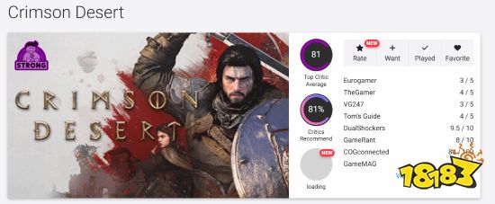 《红色沙漠》媒体评价正式解禁,OC站开分81分,媒体推荐率高达81%,获得Strong优秀标签。部分媒体评价呈现两极分化,画面与玩法争议并存。