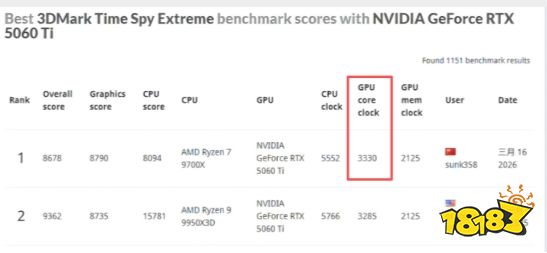 与此同时,技嘉在甜品级市场也有亮眼表现。技嘉RTX 5060 Ti 8G魔鹰显卡凭借卓越的超频潜力,在3DMark Time Spy Extreme基准测试中核心频率突破至3.33GHz,展现出强劲的超频能力。