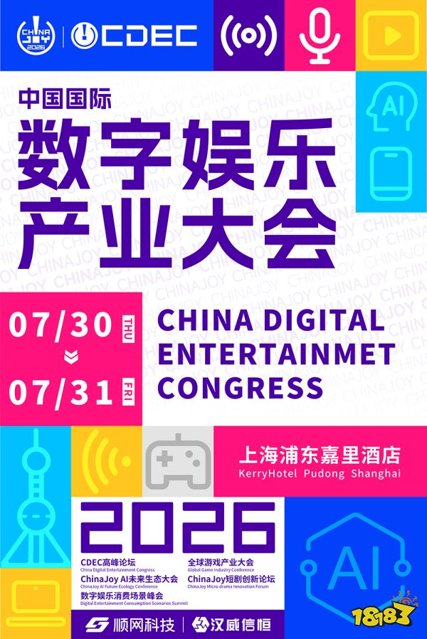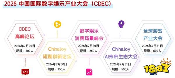 2026年中国国际数字娱乐产业大会(CDEC)为期2天,共设CDEC高峰论坛、全球游戏产业大会、ChinaJoy AI未来生态大会、ChinaJoy短剧创新论坛、数字娱乐消费场景峰会及同期合作大会等多场会议。
