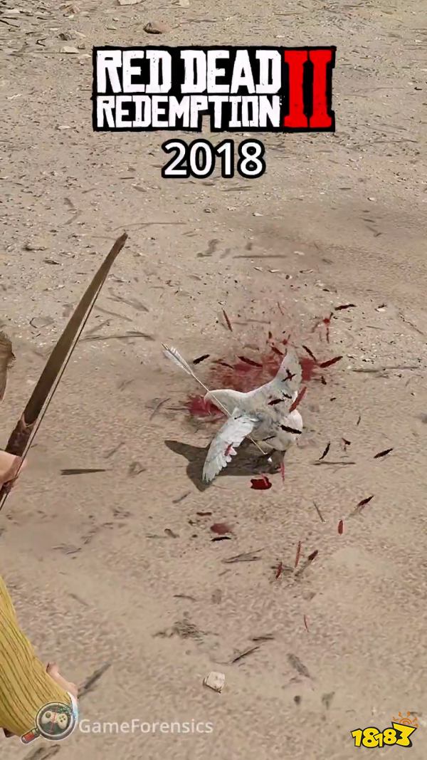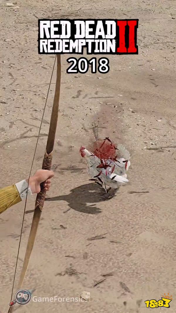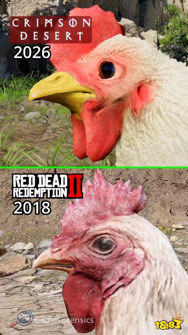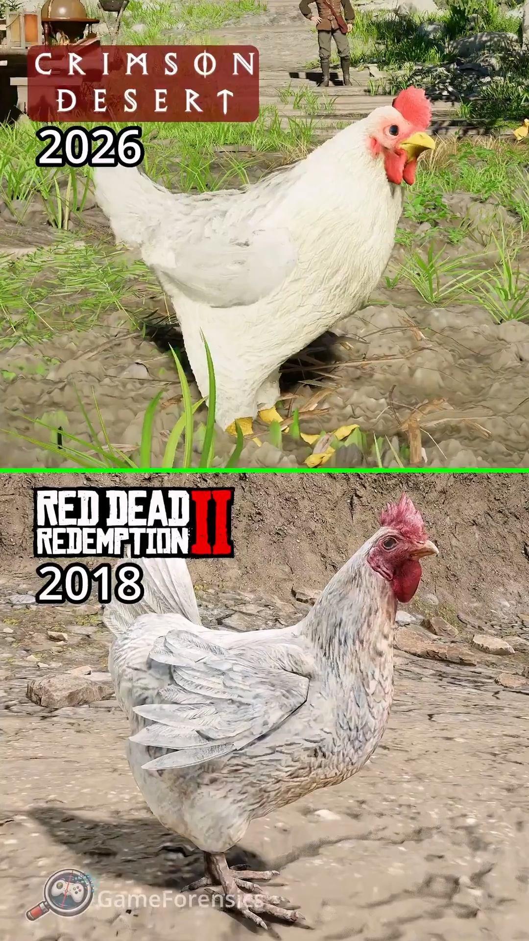 第一组对比聚焦动物模拟。R星《荒野大镖客2》物理模拟细腻,朝小鸡射箭会流血死亡。而《红色沙漠》中小鸡仅是场景摆设,与玩家毫无互动。