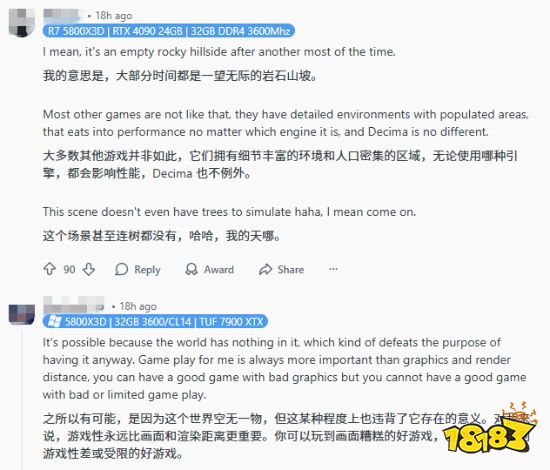 但也不乏冷静反驳。有玩家指出,Decima引擎能实现这种效果,某种程度上是因为它所呈现的世界本身空无一物,大部分时间都是一望无际的岩石山坡,连树都没有。其他游戏拥有细节丰富的环境和人口密集的区域,这必然会消耗性能,无论使用何种引擎。