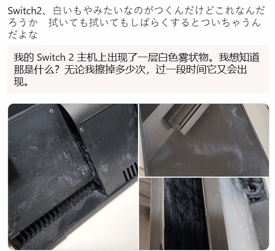 不少玩家在使用Switch2等主机时,会留意散热、接口问题,却忽略了身边隐藏的设备杀手——超声波加湿器。据外媒blog.esuteru报道,有玩家发现Switch2机身表面附着大量白色粉末,清理后很快重现。