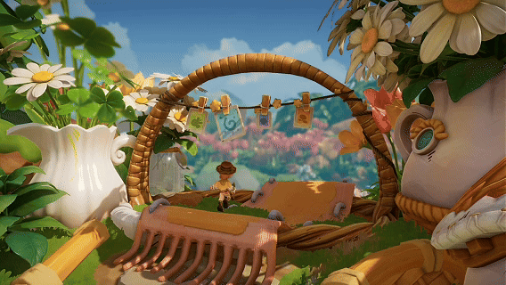 《粒粒的小人国》里的探索,和其他游戏不太一样。别的游戏给你一张望不到边的大地图,让你跑图、开传送点、清任务。而在这里,探索是“俯下身,钻进去”——钻进那些你平时根本不会多看一眼的地方。比如花海,听起来是个很普通的地名,但当你真正走进去,才会发现自己早已置身于一片色彩浓烈的视觉奇观里。巨大的花瓣在你头顶舒展,阳光透过层叠的花瓣洒落,在地面投出斑驳的光影。你穿行在比人还高的花茎之间,恍若置身于绘本世界。