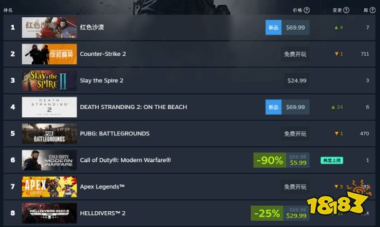 除榜首《红色沙漠》外,《杀戮尖塔2》《死亡搁浅2》分列二三位,多款经典作品因促销重回榜单,Steam春季特卖对销量拉动效应显著。