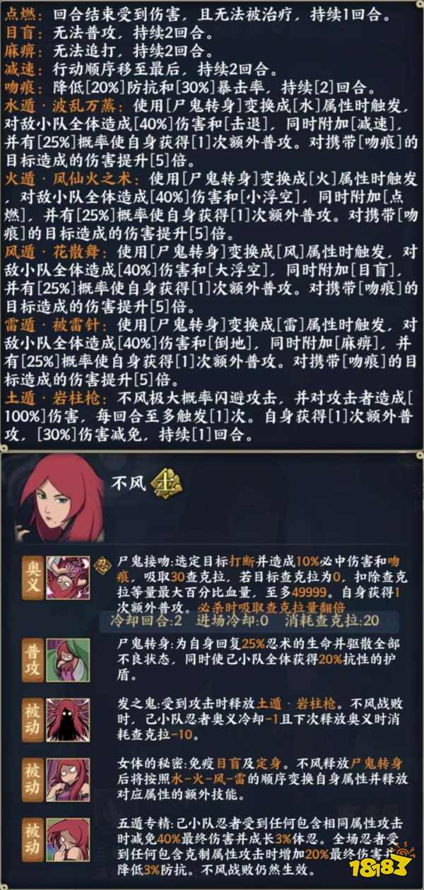(1)角都[化装舞会]对打断敌方奥义,多次普攻输出和降低对方五行抗,自身受到伤害时还能成长五行攻;