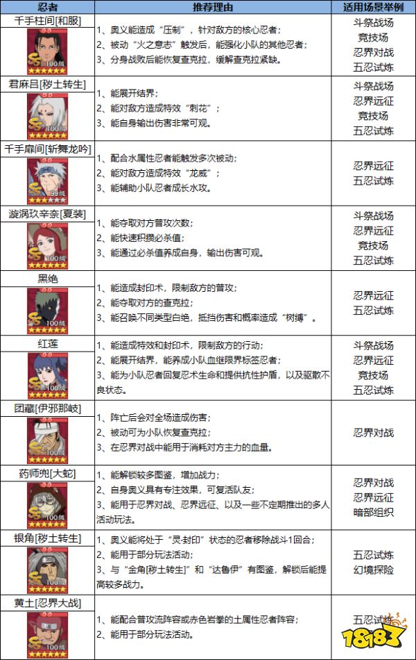 a、以上远征忍者的推荐理由仅供参考,不分先后,需要根据不同的环境和自己所拥有的忍者进行合理选择搭配;