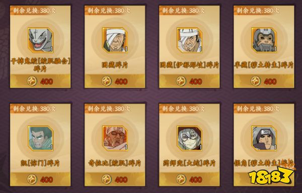 d、远征忍者图鉴收集图中,标红的忍者可通过忍界远征里的忍者兑换获得; e、可优先兑换有图鉴的“晓”标签忍者,解锁绘卷的“穿透加成”。