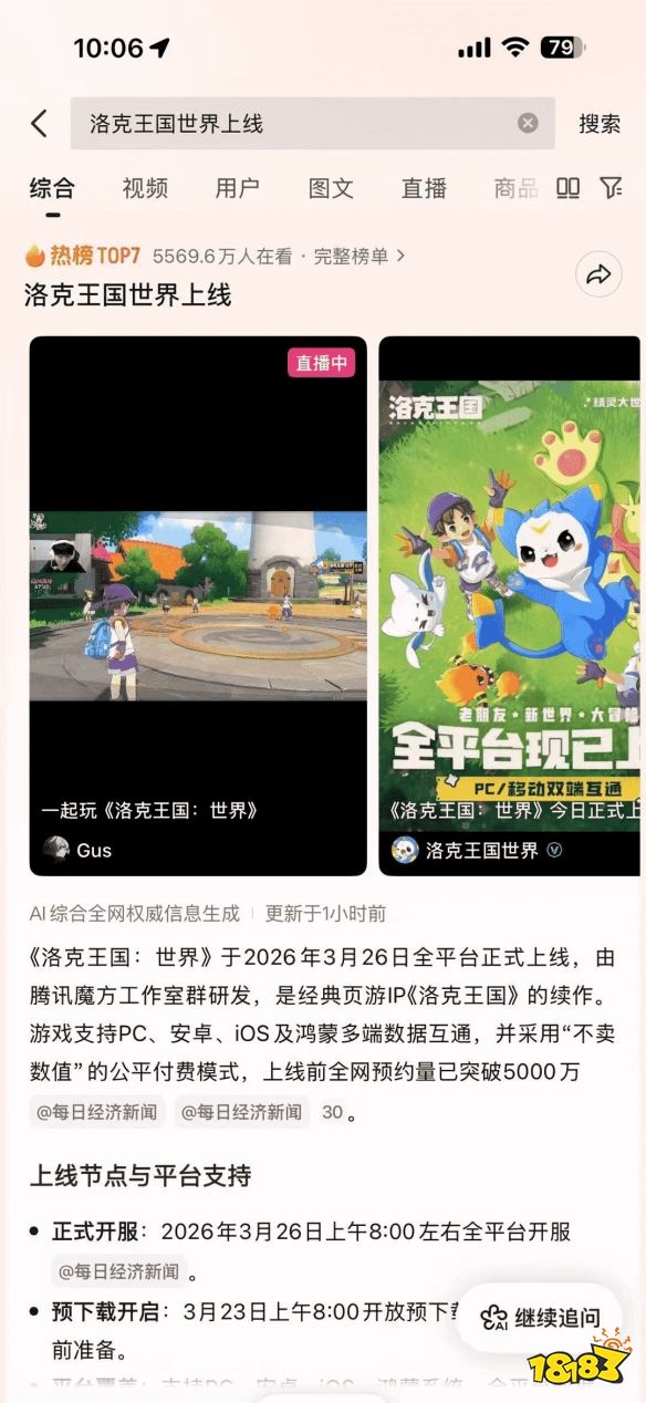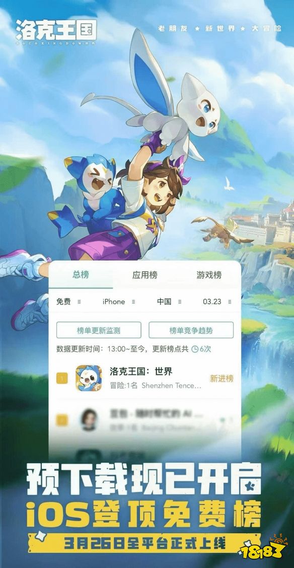 早在3月23日游戏开放预下载开启时,《洛克王国:世界》很快冲上了iOS免费总榜第一。3 月 26 日上线当天,《洛克王国:世界》延续了同样火热的表现,迅速空降多个主流应用商店下载榜首。