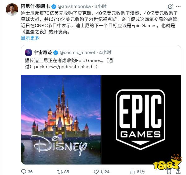 值得注意的是,Epic并非迪士尼唯一潜在收购目标。2023年曾有报道称迪士尼考虑收购EA,但未能成行。目前EA正被沙特公共投资基金等投资者财团以550亿美元收购。今年早些时候报告称,迪士尼高层曾探索与多家游戏公司合作可能,因CEO人选更替而停滞。D'Amaro多次表达对游戏业务的强烈兴趣,愿意承担风险,达成重磅游戏交易或符合其整体战略。