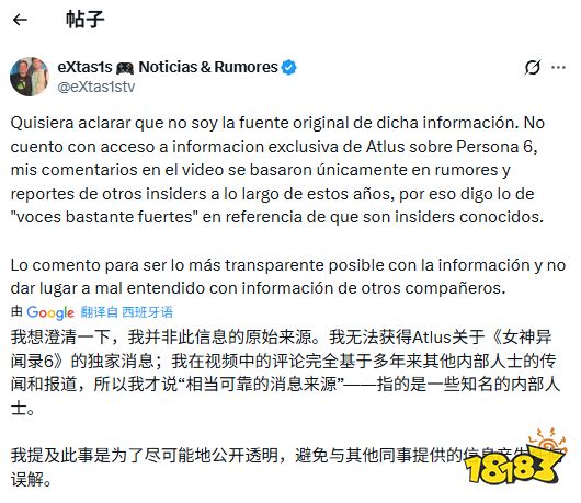Extas1s随后澄清自己并非原始信息来源,其评论基于多年来其他内部人士的传闻与报道。他表示此举是为保持信息透明度,避免误解。此前世嘉曾在一场Xbox展会上公布《女神异闻录3:重制版》。截至发稿,Atlus与微软均未对此作出正式回应,传闻真实性有待验证。