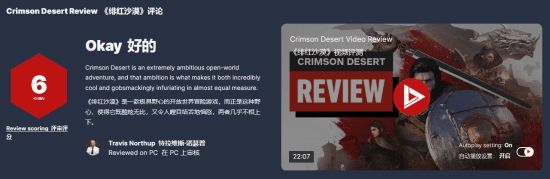 此前IGN为《红色沙漠》打出6分,影响游戏首发口碑。随着官方持续更新,问题改善,口碑与在线人数回升。评测编辑Travis Northup近日表示,同意“这款游戏值得重新评测”,计划一两个月后向编辑争取,并指出IGN长期有重评传统,如《无人深空》多次评测。“如果评测要为潜在玩家提供参考,那么在游戏不断更新的时代,评测本身也应随之更新。”