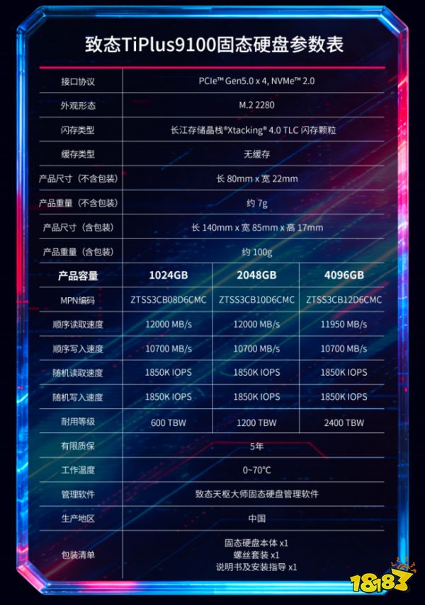 致态TiPlus9100固态硬盘提供 1TB、2TB 及 4TB 版本,现已在致态京东自营旗舰店开启预售,4月24日正式开售,欢迎选购。