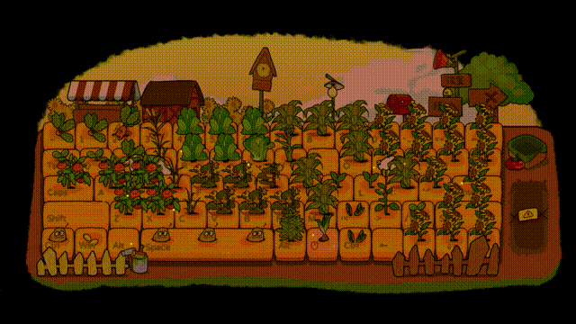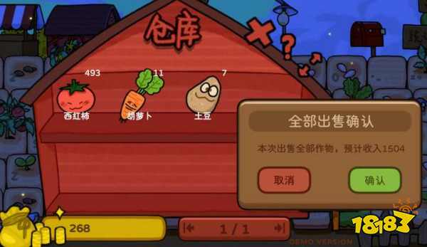 当经过若干次键盘敲击,农作物成熟后,就会自动收获进入仓库。在仓库界面,玩家可以将农作物出售换取资金购买新品种的种子,以及外观装饰等升级内容。