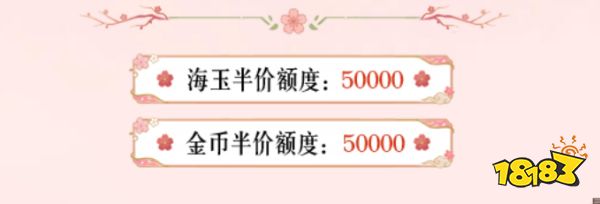 走过路过不错过,初来乍到,回馈福利先到手!轩轩得到消息:来到新服的第一周,海玉、金币消耗额度全部半价!实力增长需要金币?半价之下也就洒洒水啦~请大家务必准时来到新服,不要错过首周的特惠!