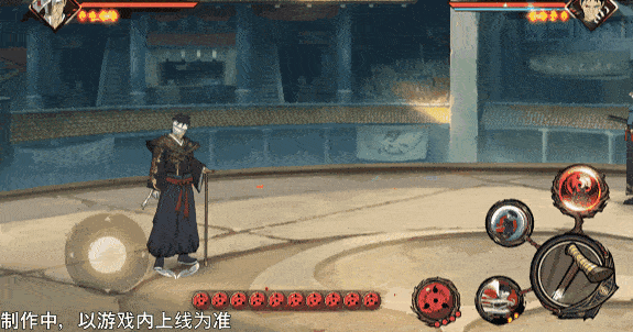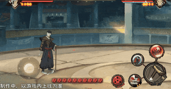 在屏幕下方有10颗写轮眼,场上的标记则代表漂泊团藏3秒前的位置,脚下的箭头会永远指向3秒前的位置。