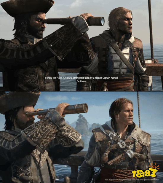 根据泄露的截图显示,重制版在画质上实现了肉眼可见的巨大飞跃。玩家在拿到泄露图后第一时间与原版进行了对比,结果令人振奋:主角爱德华·肯威及核心角色的面部建模精度大幅提升,皮肤纹理、衣物材质表现更加细腻,彻底摆脱了原版的时代感。游戏中的光照效果变得更加自然且具层次感,尤其是海面反光与植被间的阴影过渡,展现出了次世代主机的强大算力。