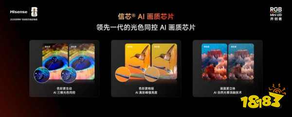 信芯光色同控AI画质芯片作为RGB-Mini LED显示的“超强大脑”,以108bits精度智能实现三维光色同控,独立调控三原色发光芯片的亮度与色彩。AI自然光晕消融技术毫秒级优化电视画面边界,AI真彩峰值亮度让色彩亮度提升80%,AI超清晰解构Pro可将低清片源重构为接近4K画质,大幅提升沉浸感。