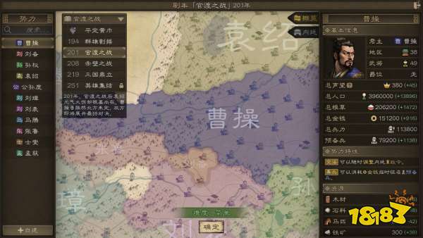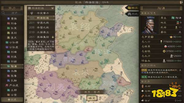 在历史上东汉105个郡国的基础上,游戏还设计了各大资源点,比如陶谦的琅琊盐场、孔融的北海渔场以及中原、淮南、河北的平原产粮区。通过控制这些关键资源产区,各个势力将在经济上获得极大增益,来还原历史中为何各大势力都急于攻占荆州、徐州这样的鱼米之乡。