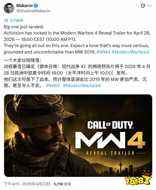 据外媒报道,爆料圈近期热议不断:《使命召唤:现代战争4》的发布信息被进一步曝光,但与此同时,关于游戏手感的负面反馈也开始出现。多位参与早期测试的知情人士,对本作的移动系统表达了担忧。有爆料称首支预告片将于2026年4月29日北京时间凌晨0:00发布,预计会是一场规模较大的亮相。