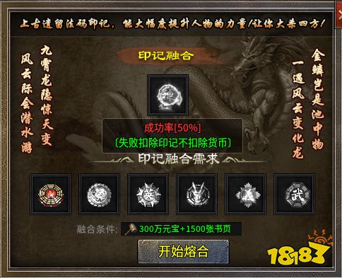 集齐六种,去安全区上方“印记融合”NPC那儿,消耗元宝和书页,50%成功率赌一把。成了,那就是本服毕业神装之一,走哪儿都有人喊“大佬”;败了,印记消失但钱退你。搏不搏?反正我觉得值得一试。毕竟,这年头能让你“赌输了也不亏”的设计,不多了。