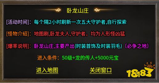 卧龙山庄:攻速和时装的唯一来源,不去就亏