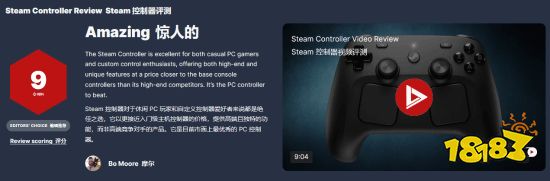 知名游戏媒体IGN提前拿到了该手柄并发布评测报告,给出9分高分评价,同时盛赞其为“PC手柄界的新标杆”。IGN在简评中指出:Steam手柄对休闲PC玩家和热衷自定义操控的玩家来说都非常出色。它在价格上更接近基础款主机手柄,却提供了高端且独特的功能,甚至能与那些高端竞品抗衡。可以说,它就是目前PC手柄中的标杆之作。