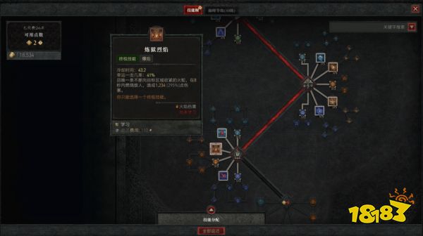 技能树上的每个主动技能格子,基本都会延伸出一些单选的分支,用以强化技能本身,这方面和3代多选一的符文有点像;而树形的技能层级分布,以及要求投入一定点数解锁后续技能的设定,则有一些2代的既视感。