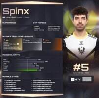 Spinx像他的许多同胞一样,都是在FPL中被人发掘,并成功拿到了一支知名战队的offer——c0ntact,并以此开启自己的职业生涯。虽然他在该队的时间不长,但他的优异表现足以说服Snappi将他揽入阵中,在那里他第一次踏上了一线赛事。