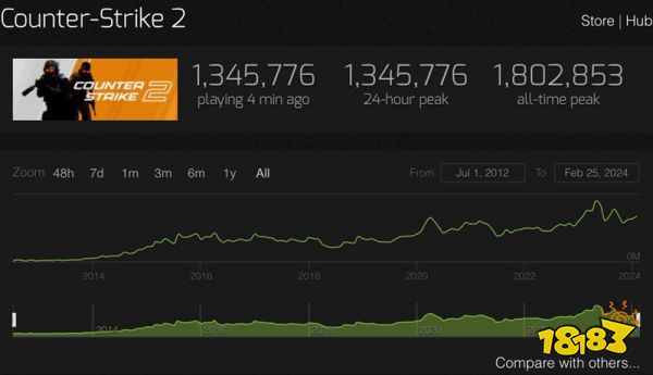 根据数据网站的统计,昨天CS新版本的同时在线人数峰值突破130万,打破2023年10月创下的在线人数记录。