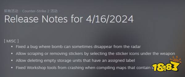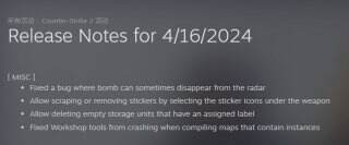 今天CS新版本推送了最新更新,内容不多,以游戏BUG修复和调整为主。内容如下。